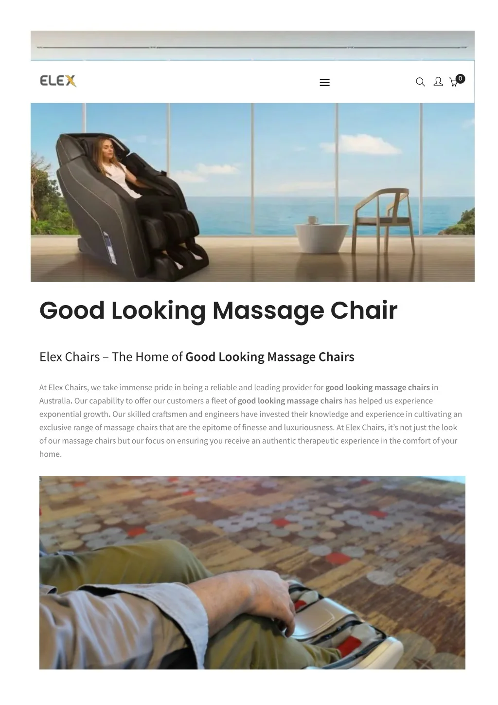 Exquisite Online Shopping Experience When you choose Elex Chairs to purchase your massage chair, you’re permitted to an experience of a lifetime. At Elex Chairs, your satisfaction is important to us. This is the reason why we give our customers with an all-inclusive and indulging online shopping experience. We feature a fleet of remarkably good looking massage chairs that are hand- picked by our experts for their durability and luxuriousness. We believe in going above and beyond to serve you with extraordinary a몭er-sales and customer care services. We are proud and humbled on having served over 8000+ satisfied customers in Australia. Allow us to help you grow your health and wellness by choosing us as your providers for good looking massage chairs. Massage Chairs in Australia That Are Unmatched Allow us to help you elevate your living standards by getting your hands on one of our finest massage chairs in Australia. At Elex Chairs, we’ve made it simpler for customers to e몭ectively browse through our finest, handpicked range of good looking massage chairs. Our products are promptly delivered at your doorsteps with additional perks like secure payment and an unmatched 5-year product warranty. We’ve strived to invest our expertise to assist you in finding the perfect massage chair that entitles you to an authentic therapeutic experience. Good Looking Massage Chairs That Are An Epitome of Relaxation and Exquisiteness At Elex Chairs, we are a trusted retailer of massage products across the country, specialising in luxurious and good looking massage chairs. Our professionals have devoted their experience and expertise to developing an exquisite fleet of massage chairs that are second to none. Every single massage chair that we proudly feature on our website entitles you to a genuine therapeutic experience. Our range of massage chairs helps you in positively contributing to your physical and mental wellbeing. We’ve served hundreds of satisfied customers in Australia and are humbled by the reputation that we’ve built over the years. Trusting Elex Chairs with your good looking massage chair needs, you’re entitled to prompt deliveries and unparalleled customer service. A몭er Sales Services That Are Second To None One of the major reasons why customers trust us for their massage chair needs is our reliable payment methods and prompt deliveries. We ascertain that your desired massage chair is delivered to your doorstep in the safest manner possible. If you’ve been searching for a quality massage chair getting in touch with Elex Chairs is the first step in the right direction. Are you tired of searching for good looking massage chairs in Australia? Elex Chairs is all you need to get the ball rolling. Please feel free to get in touch with us by dialling 1300 00 98 00.