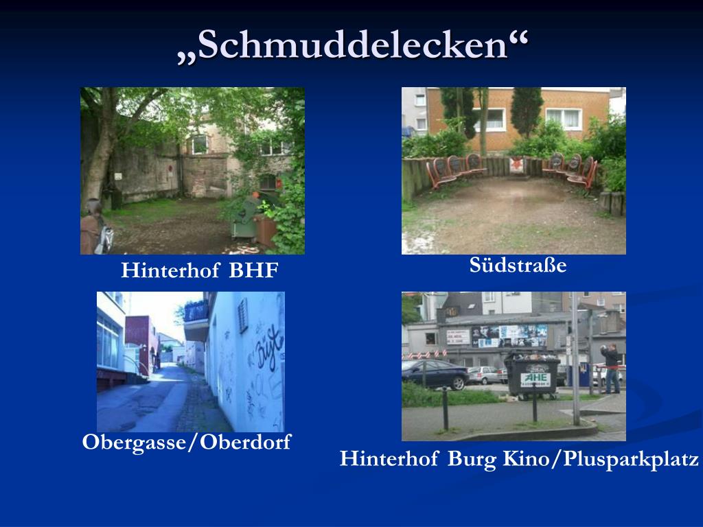 „Schmuddelecken“ Südstraße Hinterhof BHF Obergasse/Oberdorf Hinterhof Burg Kino/Plusparkplatz
