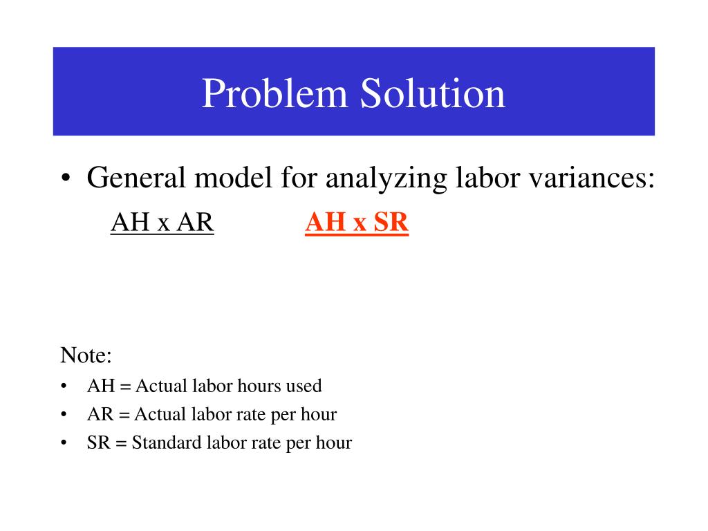 Problem Solution • General model for analyzing labor variances: AH x AR • Note: • AH = Actual labor hours used • AR = Actual labor rate per hour