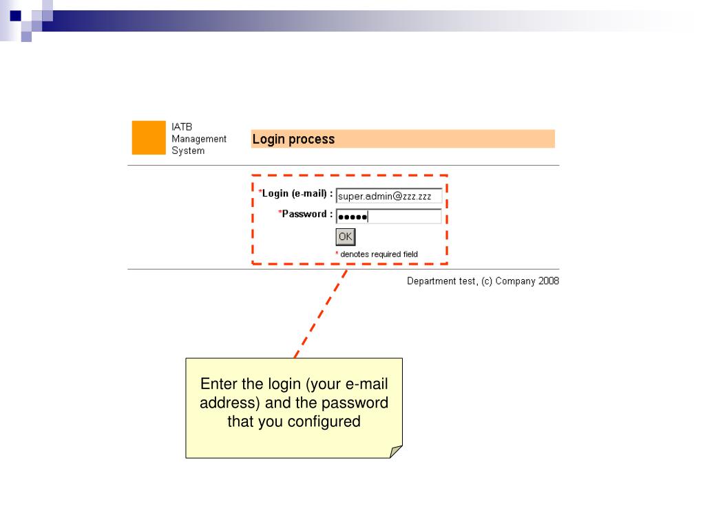 IATB. Team management for geographically dispersed teams. Registration process. When you’ll click on the link you received by e-mail you’ll be redirected to this registration form which allow you to define the password for your account (the login is the e-mail address).