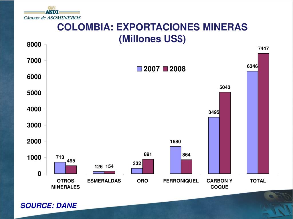 Cámara de ASOMINEROS COLOMBIA: EXPORTACIONES MINERAS (Millones US$) SOURCE: DANE