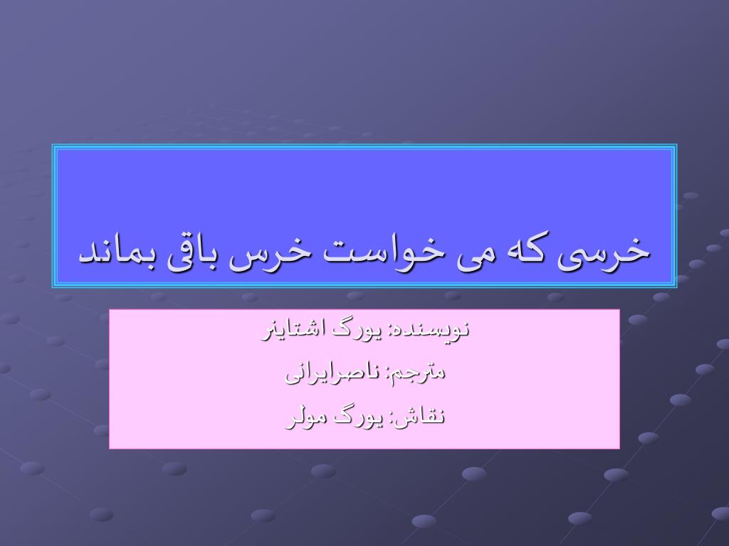 خرسی که می خواست خرس باقی بماند. نویسنده: یورگ اشتاینر مترجم: ناصرایرانی نقاش: یورگ مولر. درختان برگ می ريختند و غازهای وحشی رو به جنوب پرواز می کردند. سردی باد خرس را می آزرد. او يخ کرده و خسته بود. بوی برف را در هوا شنيد و به سوی غار