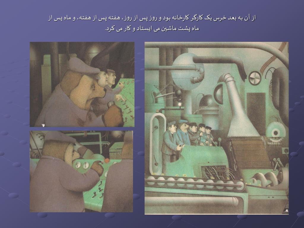 از آن به بعد خرس يک کارگر کارخانه بود و روز پس از روز، هفته پس از هفته، و ماه پس ازماه پشت ماشين می ايستاد و کار می کرد.
