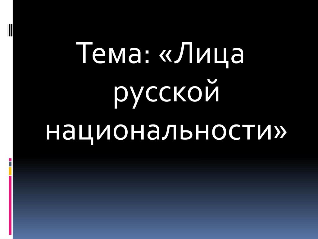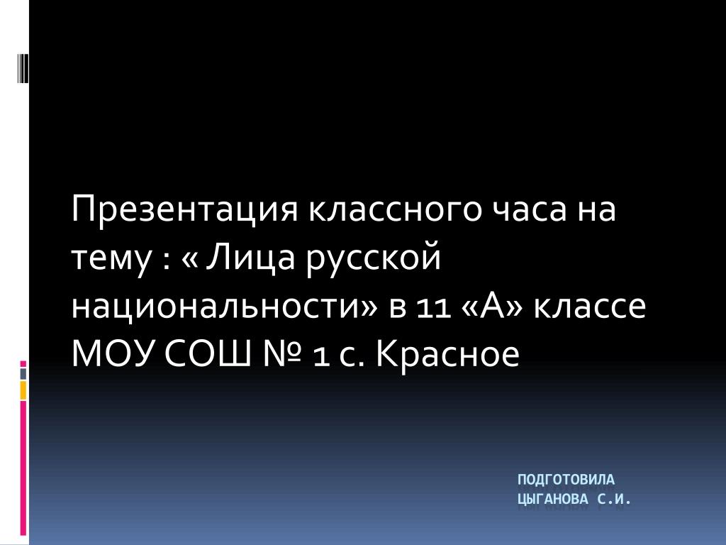 Презентация классного часа на тему : « Лица русской национальности» в 11 «А» классе МОУ СОШ № 1 с. Красное Подготовила Цыганова С.И.