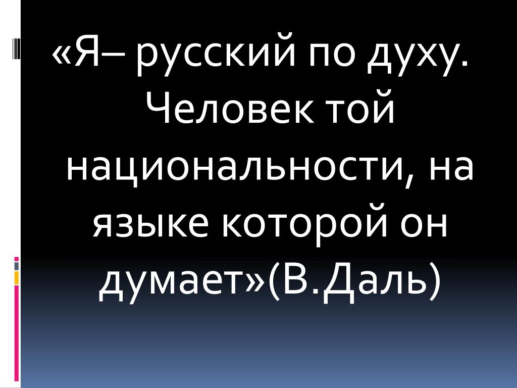 «Я– русский по духу. Человек той национальности, на языке которой он думает»(В.Даль)
