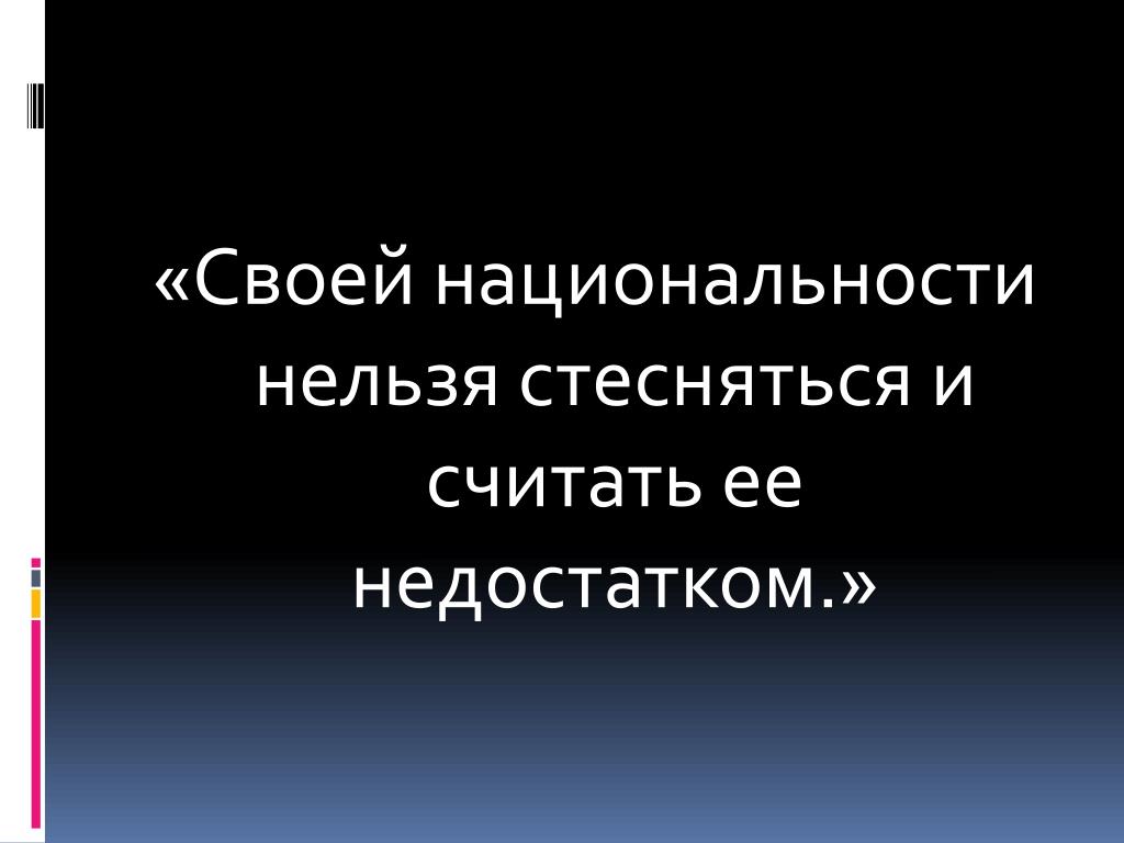 «Своей национальности нельзя стесняться и считать ее недостатком.»