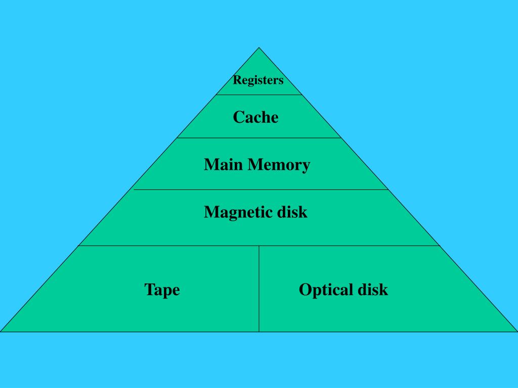 Registers Cache Main Memory Magnetic disk Tape Optical disk
