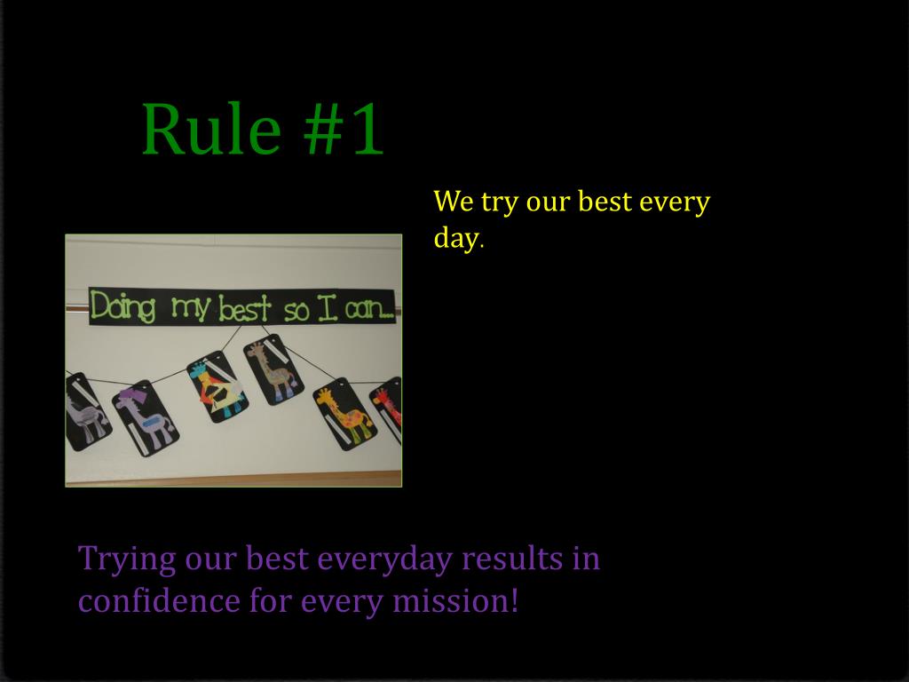 Rule #1 We try our best every day. Trying our best everyday results in confidence for every mission!