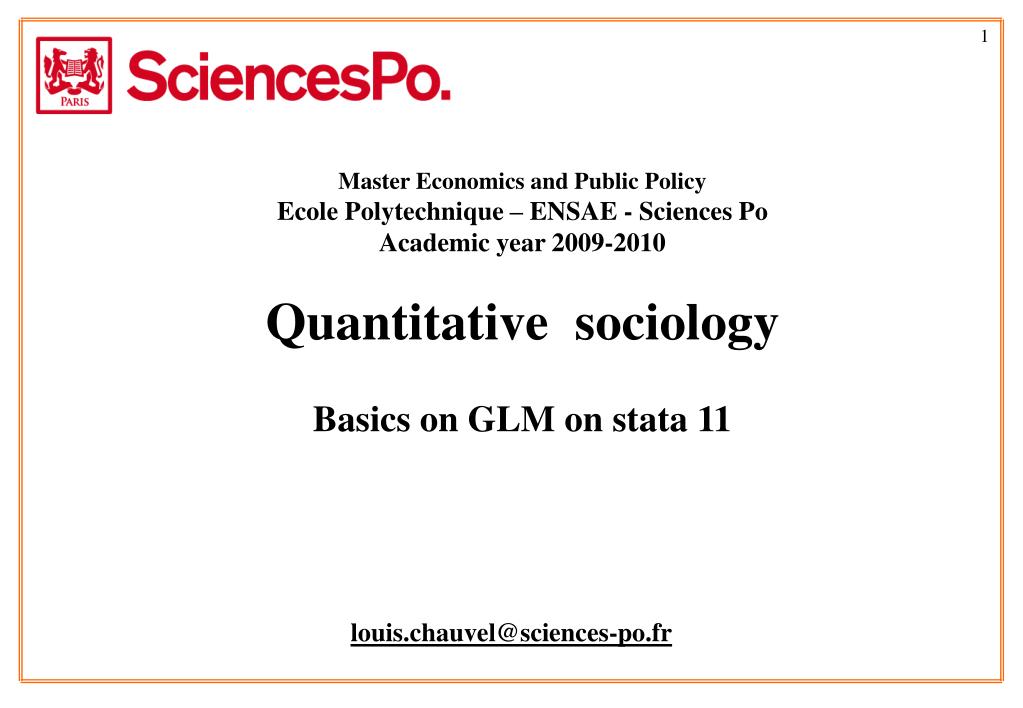 Master Economics and Public Policy Ecole Polytechnique – ENSAE - Sciences Po Academic year 2009-2010 Quantitative sociology Basics on GLM on stata 11 louis.chauvel@sciences-po.fr