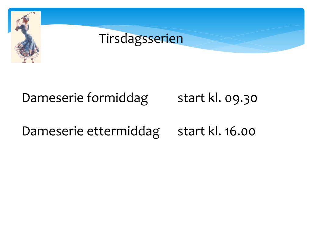 Tirsdagsserien Dameserie formiddag start kl. 09.30 Dameserie ettermiddag start kl. 16.00