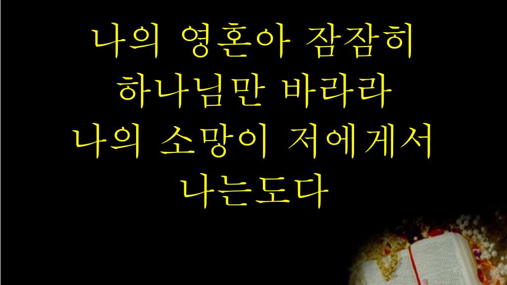 나의영혼이 잠잠히 하나님만 바람이요나의 구원이 그에게서 나는 도다
