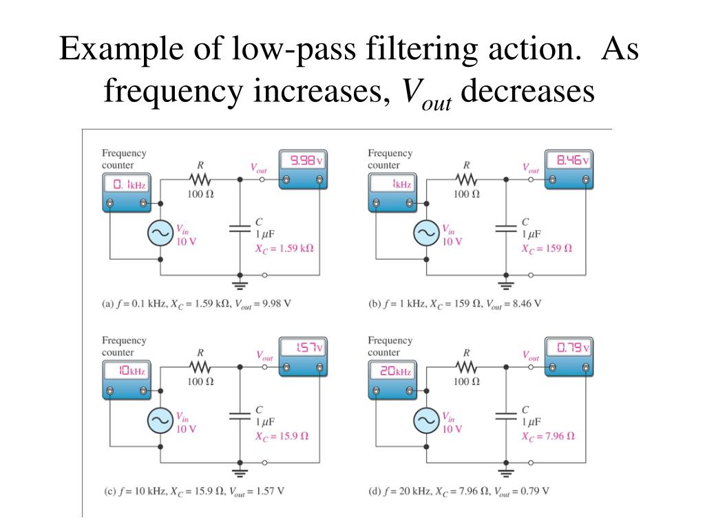 Example of low-pass filtering action. As frequency increases, Vout decreases