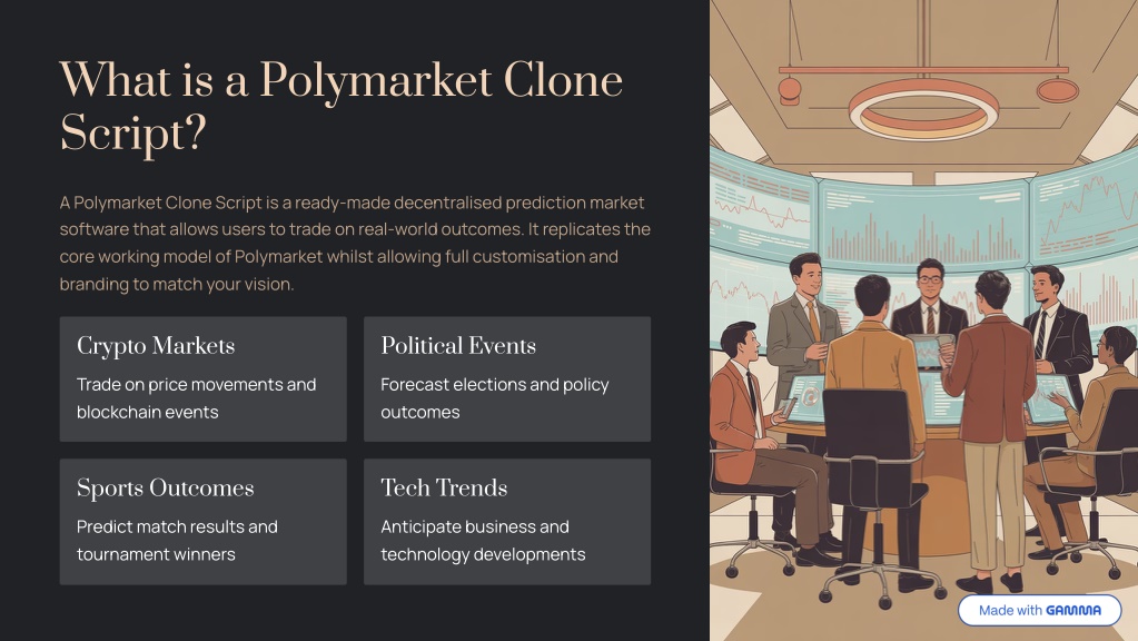 Who Should Use a Polymarket Clone Script? Web3 startups Crypto exchanges and trading firms DAO and community platforms Media and analytics companies Enterprises building forecasting tools