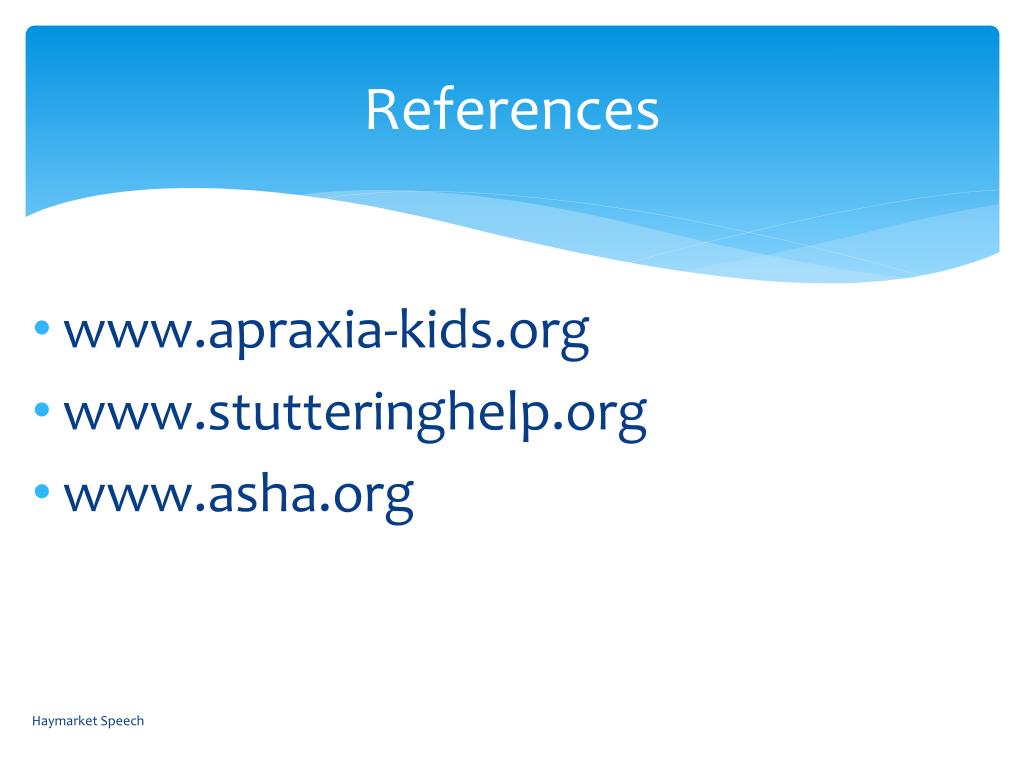 References Haymarket Speech • www.apraxia-kids.org • www.stutteringhelp.org • www.asha.org