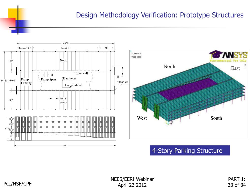 Design Methodology Verification: Prototype Structures 4-Story Parking Structure NEES/EERI Webinar April 23 2012
