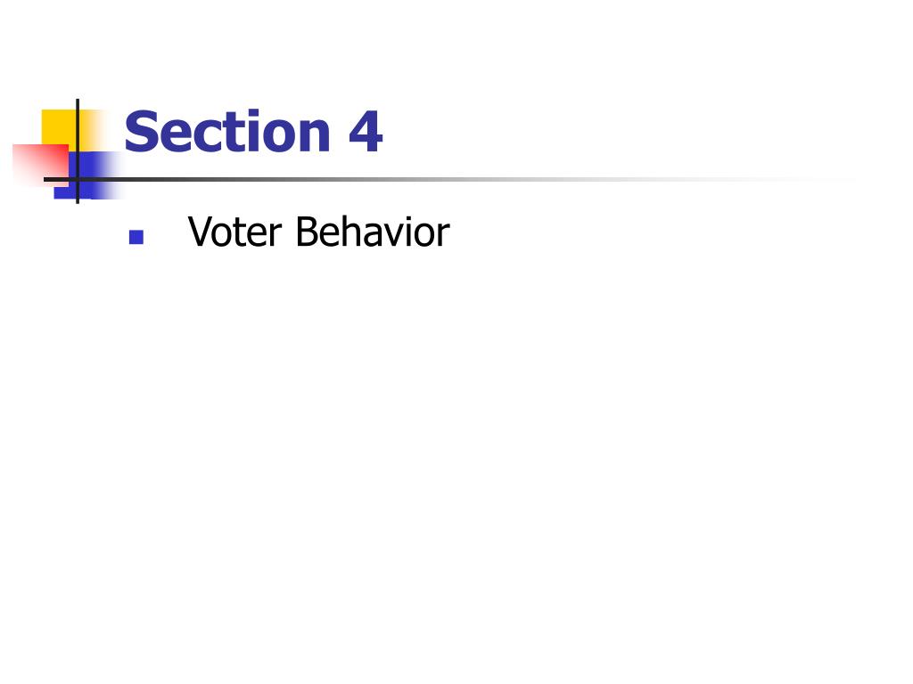Voters and voting Behavior (Con’t) • Religious, Ethnic Background • Protestants more likely vote GOP • Catholics and Jews tend to vote Democrat • FDR’s New Deal and LBJ’s Civil Rights Acts of the 1960’s moved majority of African-American votes to Democrats • Latino’s are more unpredictable • Geography • GOP has drawn good support from the South, and Democrats to the North • Democrats tend to get the bigger cities, while GOP draws the rural areas of the country • Family and Other Groups • 9/10 married couples vote the same way