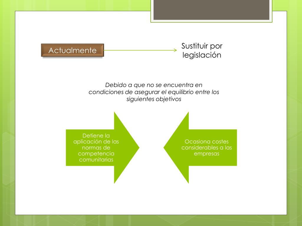 Sustituir por legislación Actualmente Debido a que no se encuentra en condiciones de asegurar el equilibrio entre los siguientes objetivos