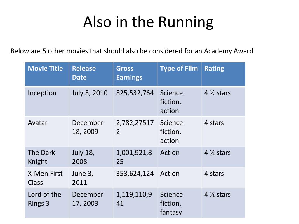 Also in the Running Below are 5 other movies that should also be considered for an Academy Award.