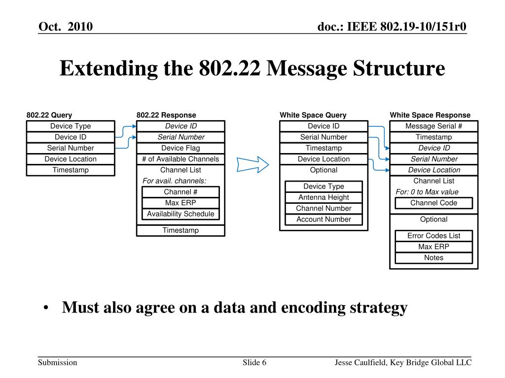 Must also agree on a data and encoding strategy Extending the 802.22 Message Structure Jesse Caulfield, Key Bridge Global LLC