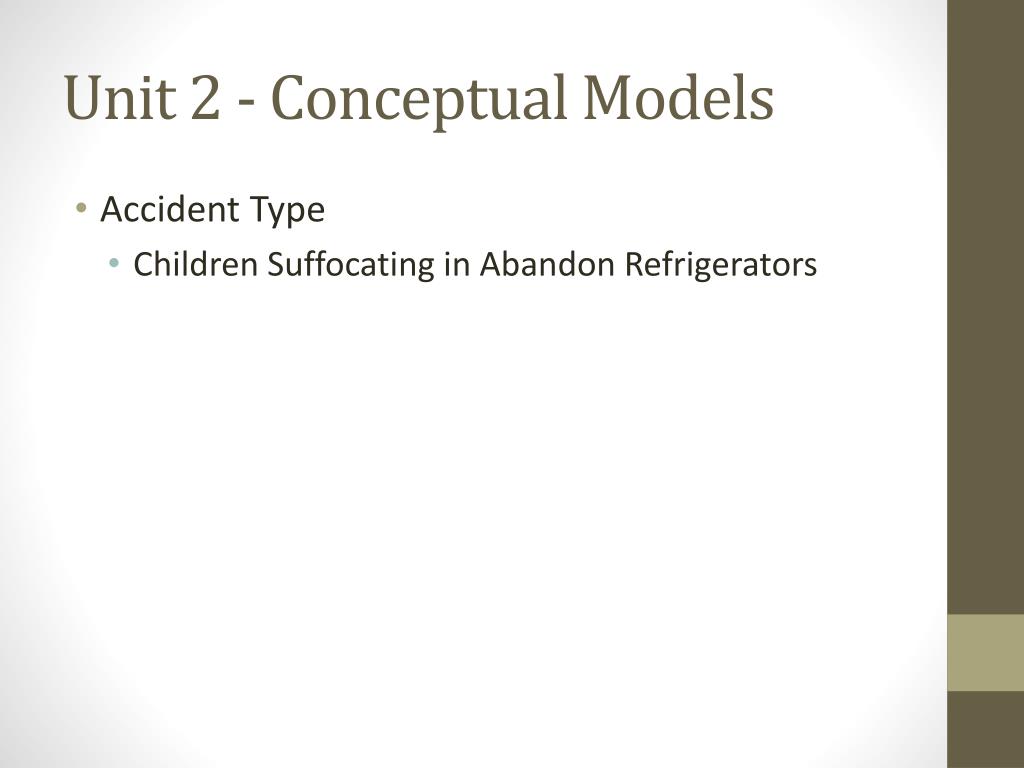 Unit 2 - Conceptual Models • Accident Type • Children Suffocating in Abandon Refrigerators
