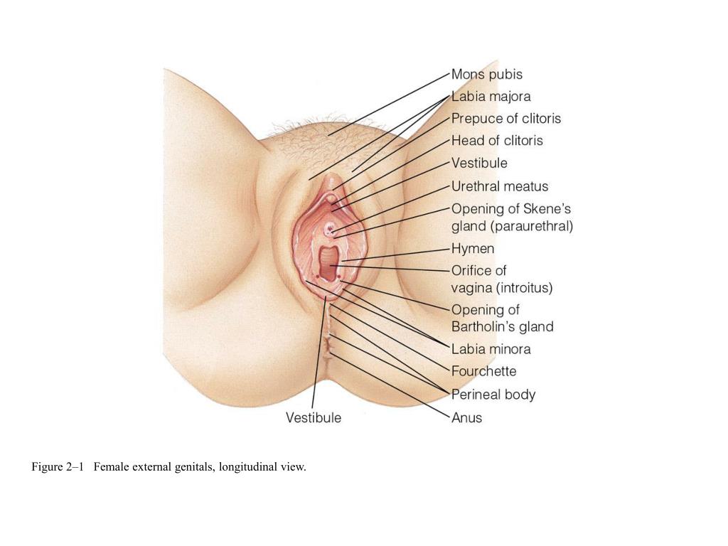 Reproductive Anatomy • External Organs • Mons Pubis • Labia Majora • Labia Minora • Clitoris • Vaginal Vestibule • Urethral meatus • Skene’s Glands • Hymen • Fourchete • Perineum