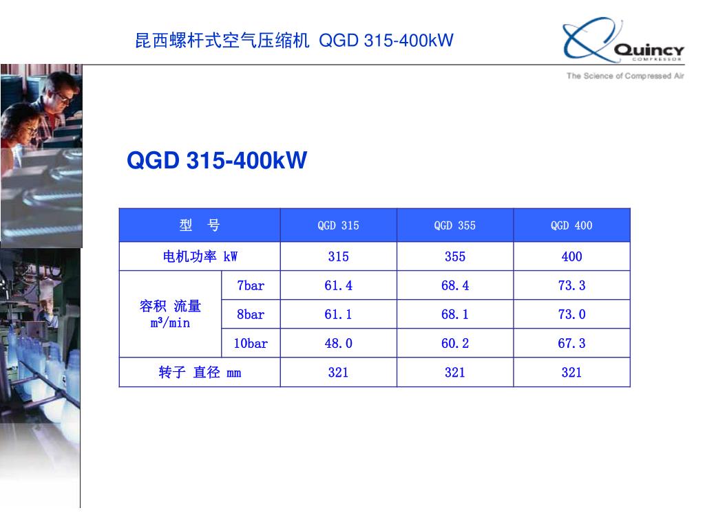 昆西螺杆式空气压缩机 QGD 315-400kW 谢 谢! 美国昆西压缩机 昆山昆泰克空气系统技术有限公司