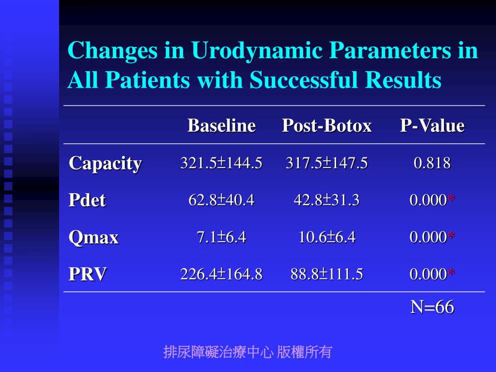 Changes in Urodynamic Parameters in All Patients with Successful Results