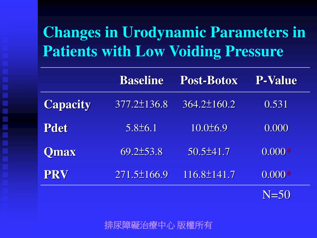 Changes in Urodynamic Parameters in Patients with Low Voiding Pressure