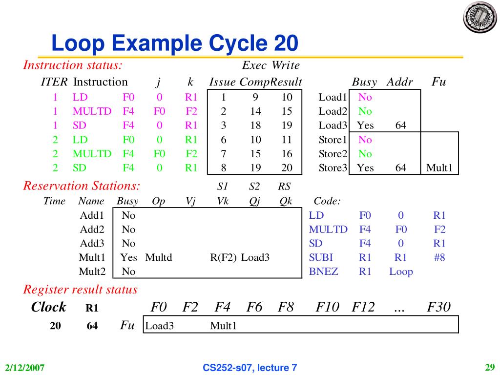 Loop Example Cycle 20 CS252-s07, lecture 7