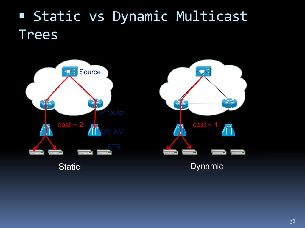 Static vs Dynamic Multicast Trees Source IP router cost = 2 cost = 1 DSLAM STB Dynamic Static