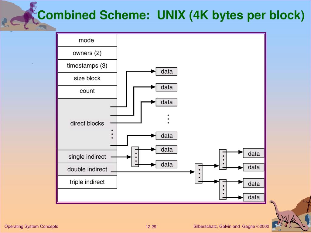 Combined Scheme: UNIX (4K bytes per block) Operating System Concepts