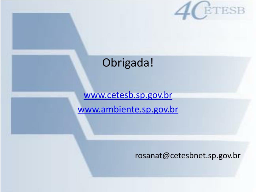 Obrigada! www.cetesb.sp.gov.br www.ambiente.sp.gov.br rosanat@cetesbnet.sp.gov.br