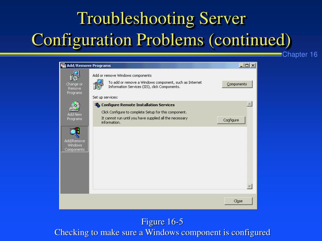 Troubleshooting Server Configuration Problems (continued) Figure 16-5 Checking to make sure a Windows component is configured