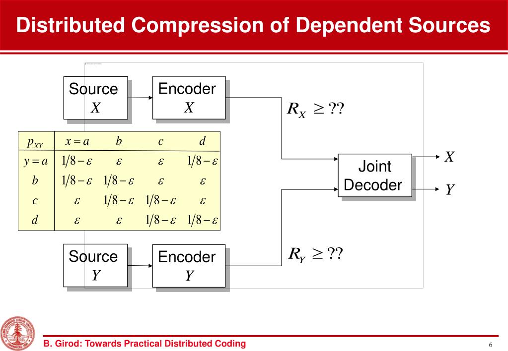 Distributed Compression of Dependent Sources Encoder X Source X X Joint Decoder Y Source Y Encoder Y