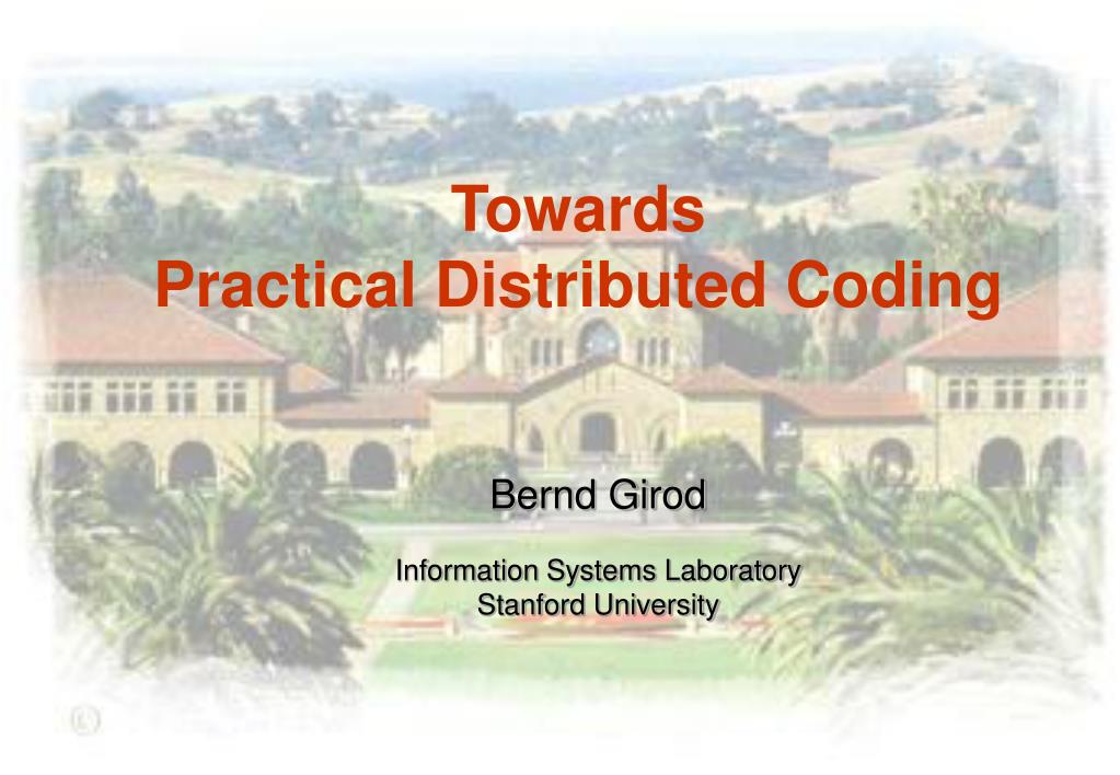 Towards Practical Distributed Coding Bernd Girod Information Systems Laboratory Stanford University