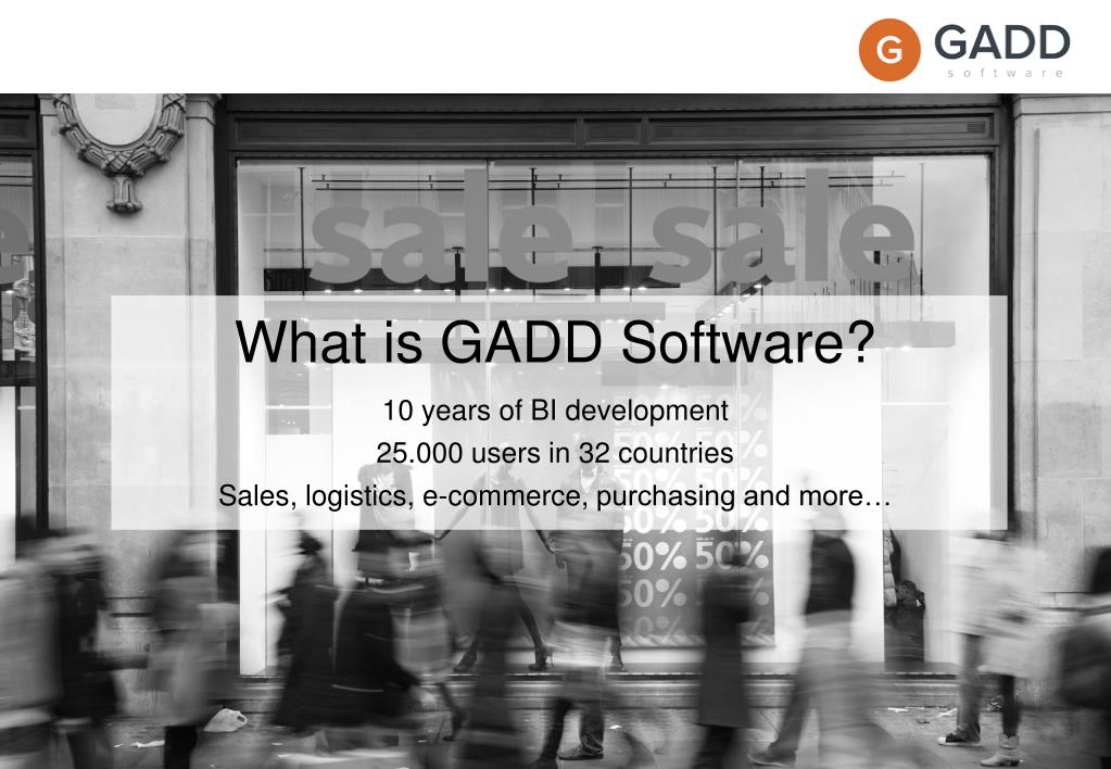 What is GADD Software? • 10 years of BI development • 25.000 users in 32 countries • Sales, logistics, e-commerce, purchasing and more…