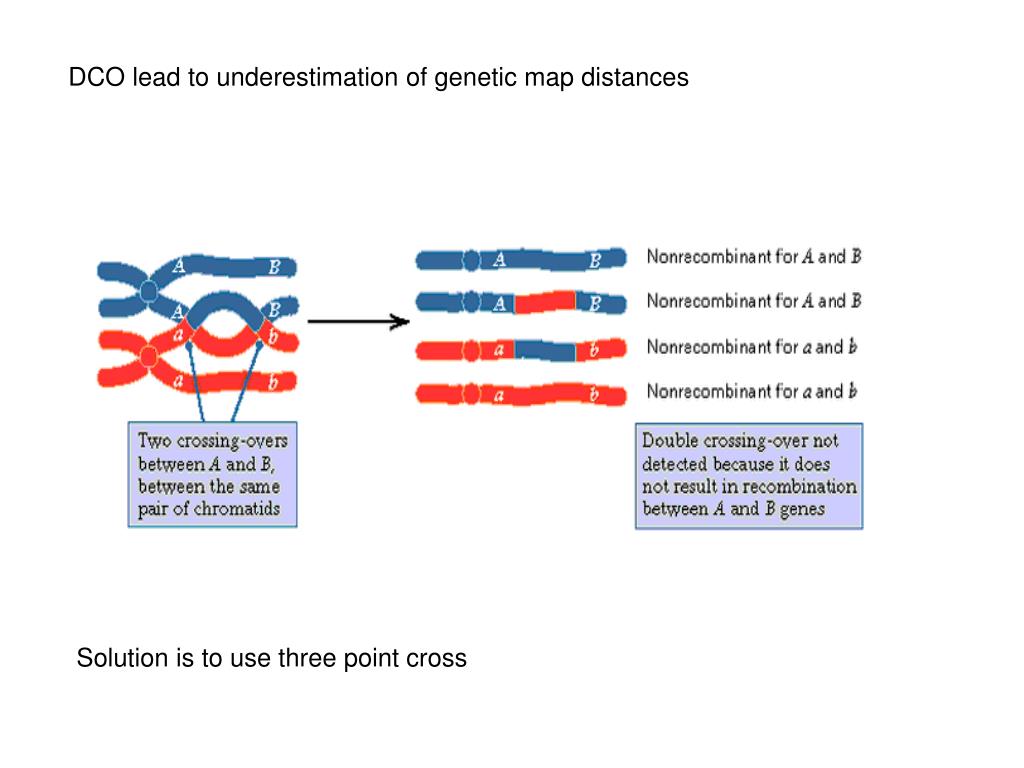 DCO lead to underestimation of genetic map distances Solution is to use three point cross