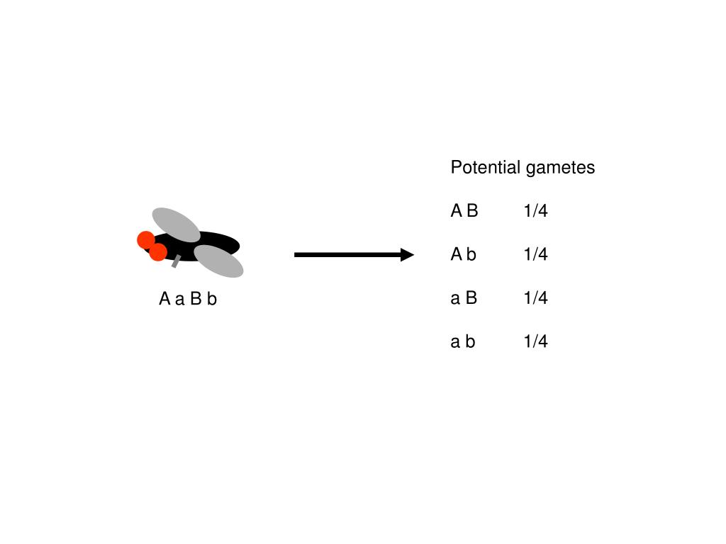 Potential gametes A B 1/4 A b 1/4 a B 1/4 a b 1/4 A a B b