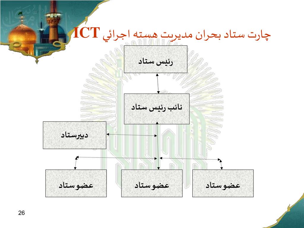 چارت ستاد بحران مديريت هسته اجرائي ICT رئيس ستاد نائب رئيس ستاد دبيرستاد عضو ستاد عضو ستاد عضو ستاد