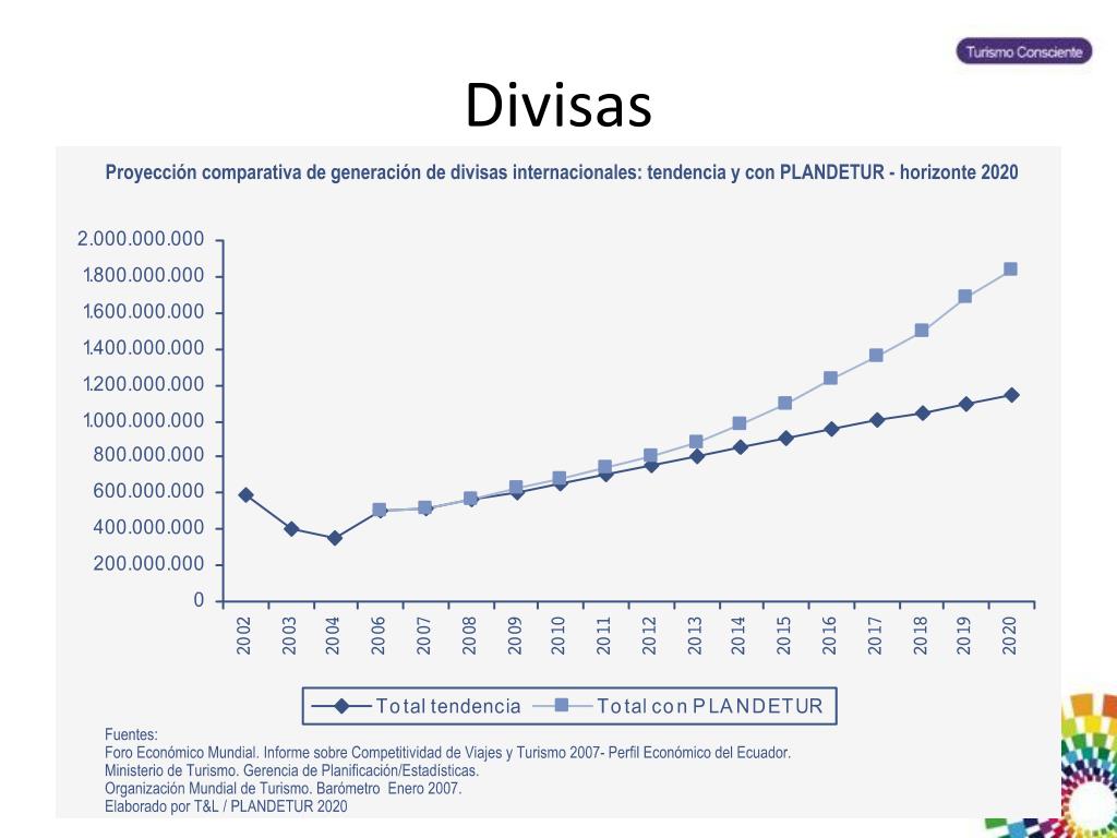 Visión del Turismo para el 2020 • El Ecuador en el año 2020: PLANDETUR • Ha consolidado al turismo sostenible como una herramienta eficaz oportunidades de empleo y de mejoramiento de la calidad de vida de sus poblaciones, comunidades y territorios bajo un marco legal e institucional moderno y eficaz. • Está posicionado como un destino turístico sostenible líder altamente diverso, competitivo, seguro y de calidad en el ámbito internacional • Garantiza la gestión sostenible en el desarrollo y operación turística de sus riquezas culturales y naturales; la articulación de las cadenas de valor del turismo; la seguridad y la calidad de los destinos; la innovación, el conocimiento y la tecnología aplicada; con conectividad, infraestructura y facilidades adecuadas para el turismo. • El Ecuador en el año 2020: • Ha consolidado el turismo conciente como una herramienta eficaz oportunidades de empleo y de mejoramiento de la calidad de vida de sus poblaciones, comunidades y territorios bajo un marco legal e institucional moderno, eficaz y enmarcado en la visión del Sumak Kawsay o buen vivir. • Está posicionado como un destino turístico de experiencias, altamente diverso, competitivo, seguro y de calidad en el ámbito internacional • Garantiza la gestión consiente en el desarrollo y operación turística de sus riquezas culturales y naturales; la articulación de las cadenas de valor del turismo; la seguridad y la calidad de los destinos; la innovación, el conocimiento y la tecnología aplicada; con conectividad, infraestructura y facilidades adecuadas para el turismo.