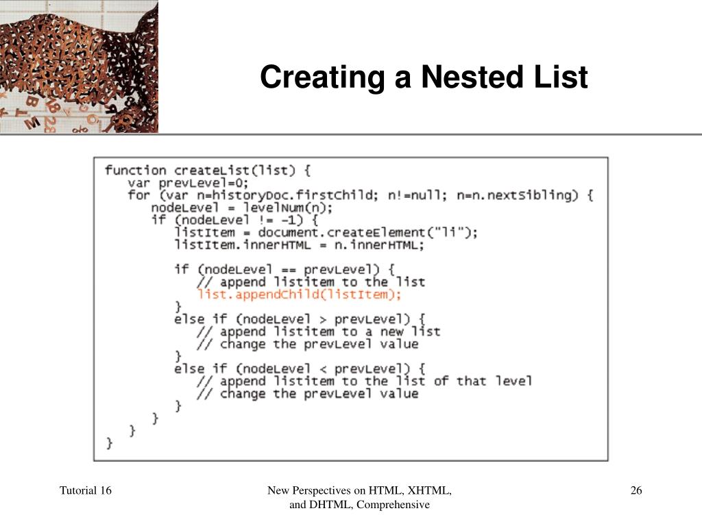 Creating a Nested List New Perspectives on HTML, XHTML, and DHTML, Comprehensive