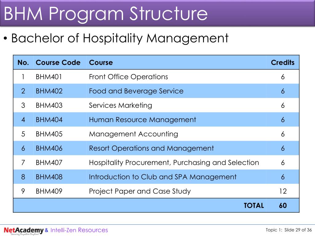 BHM Program Structure • Bachelor of Hospitality Management