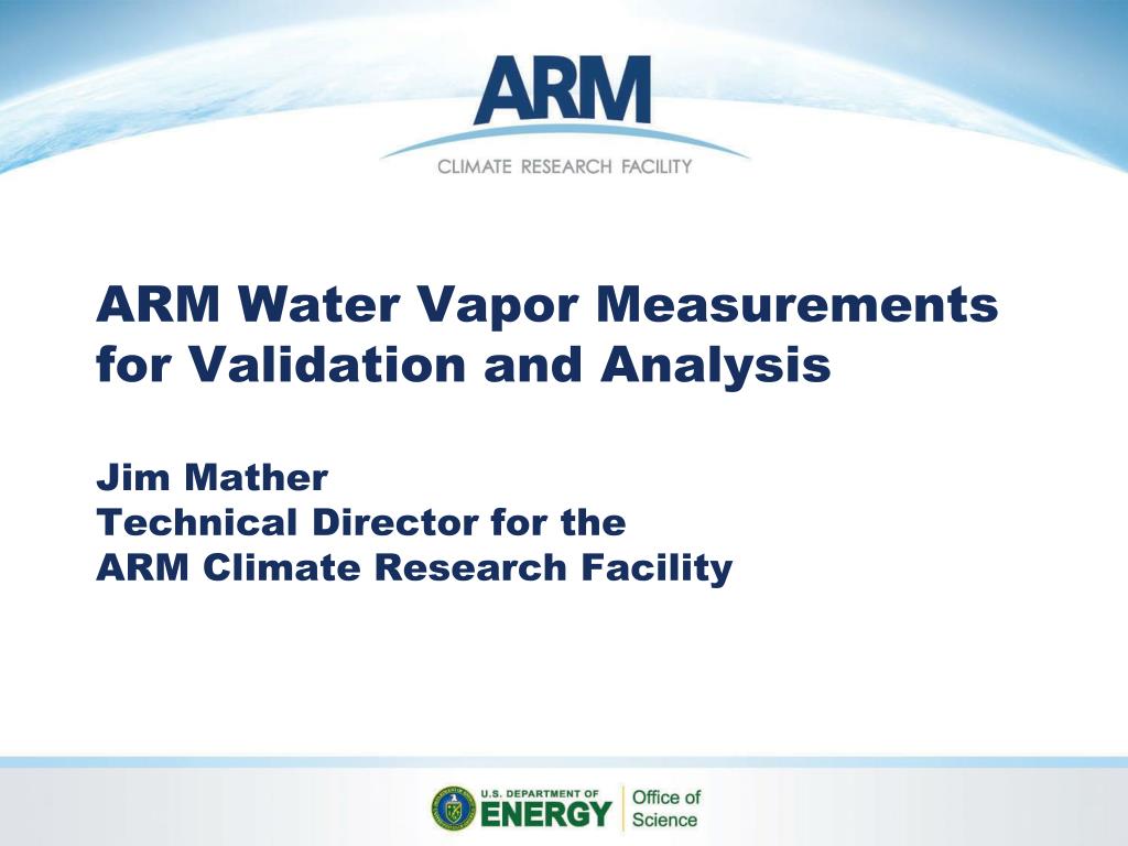ARM Water Vapor Measurements for Validation and AnalysisJim MatherTechnical Director for the ARM Climate Research Facility