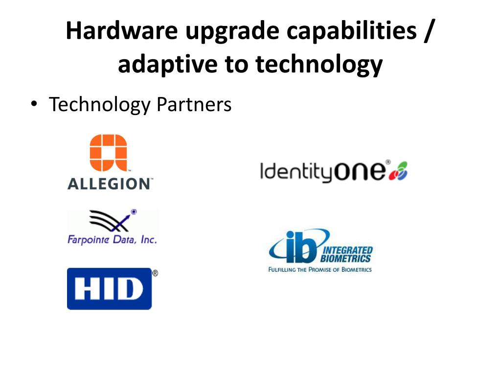 Hardware upgrade capabilities / adaptive to technology • Technology Partners