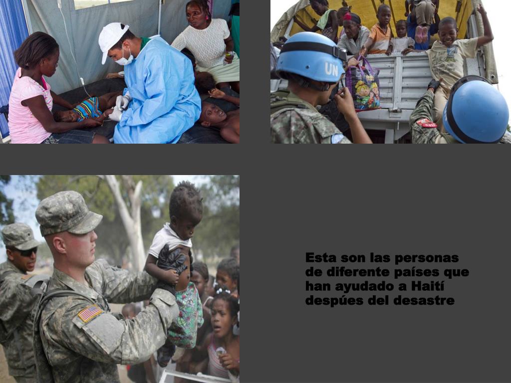 Imágenes De Haití. Estas son unas imágenes del terremoto de Haití y como ha quedado. 16/05/12. Esta son las personas de diferente países que han ayudado a Haití despúes del desastre. 16/05/12.