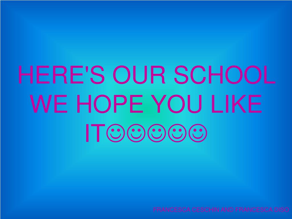 HERE'S OUR SCHOOL WE HOPE YOU LIKE IT FRANCESCA CESCHIN AND FRANCESCA DISO
