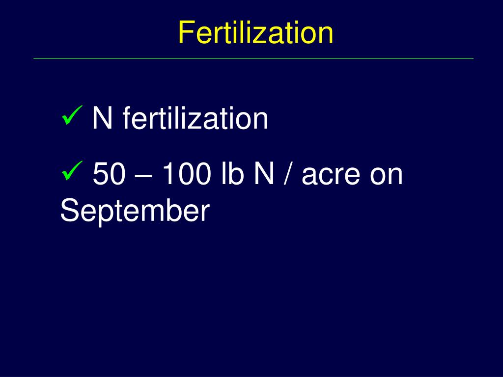 Fertilization • N fertilization • 50 – 100 lb N / acre on September