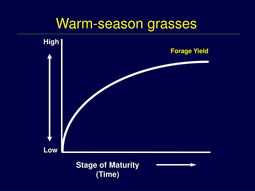 Warm-season grasses High Forage Yield Nutritive Value Low Stage of Maturity (Time)