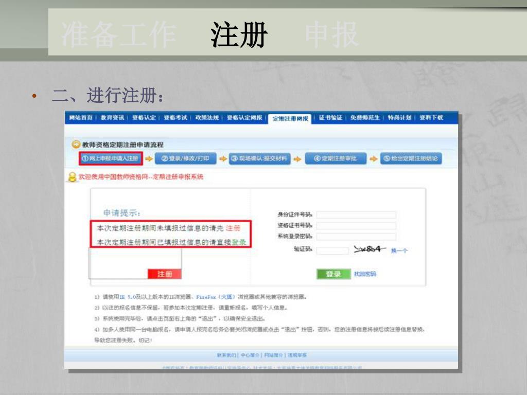 准备工作 注册 申报 • 二、进行注册:
