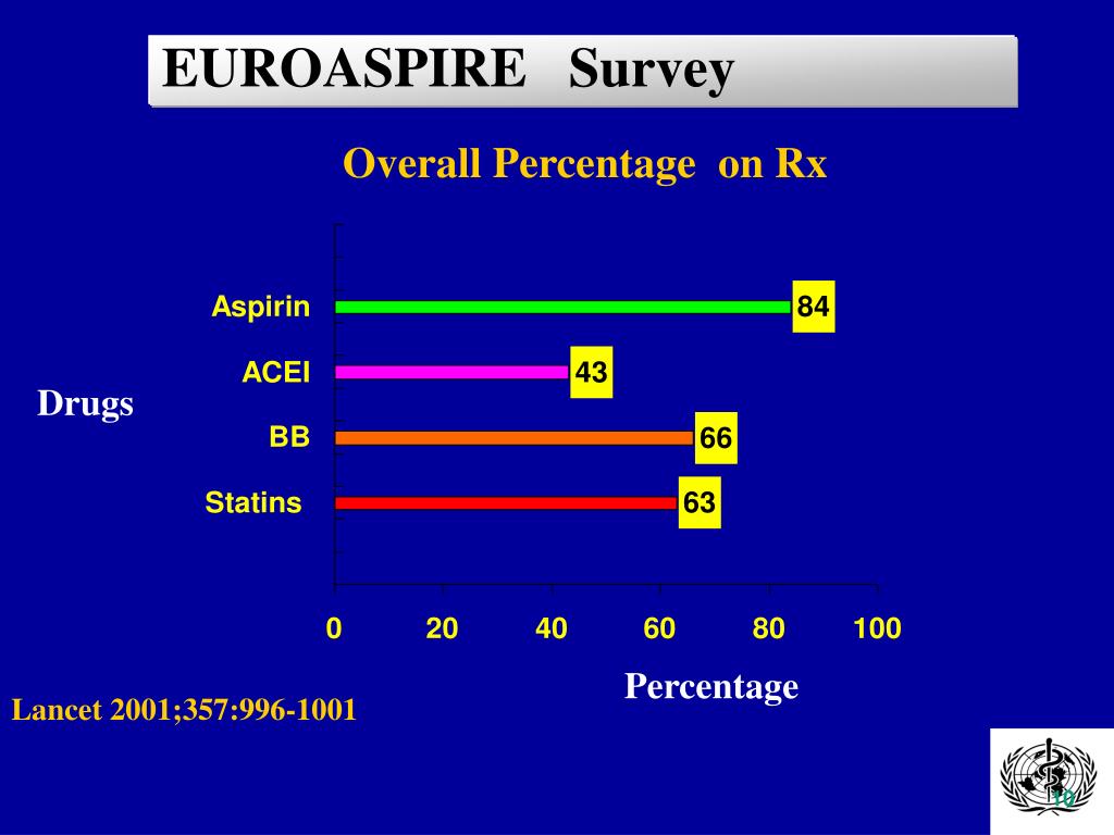 EUROASPIRE Survey Overall Percentage on Rx Drugs Percentage Lancet 2001;357:996-1001